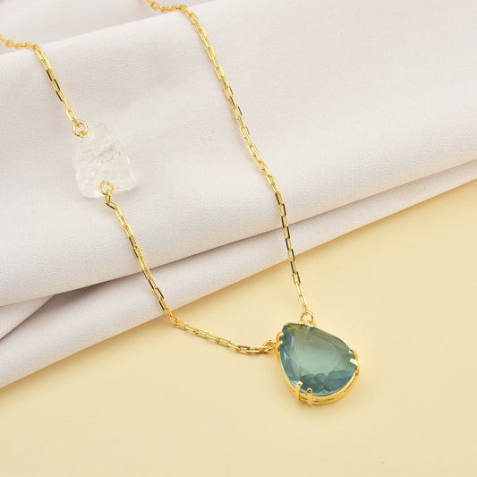 Raw Crystal and Blue Topaz Necklace